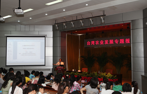 上午,由中国国际科技会议中心主办,北京市科协和我校共同承办的“台湾农业发展专题报告会”在我校图书馆小报告厅举行。校党委书记王慧敏教授,校长王有年教授,副校长郑一淳,中国国际科技会议中心主任何健,北京市科协副主席田文,台湾神农科技发展协会理事长廖树宏以及中国科协和北京市科协有关部门领导出席了报告会,经管学院等学院的150余名师生听取了报告。