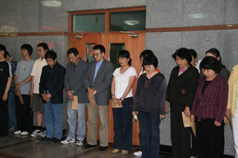 下午4点,生物技术系全体教师和学生代表在学校实验楼A座一层大厅隆重举行震灾捐款仪式。活动仪式上全体师生高唱国歌,集体为在