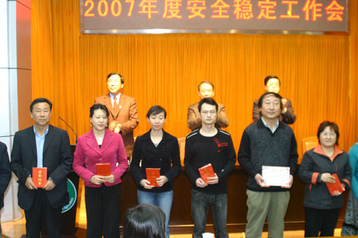 王有年院长宣读了《关于表彰2006年度安全稳定工作先进单位和先进个人的决定》。校领导为植物科学技术系等四个先进单位和于桉等23名先进个人颁奖。