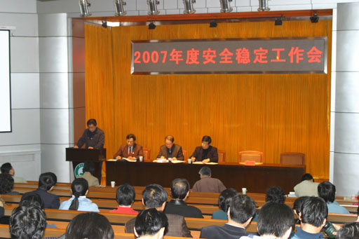 ,我校隆重召开2007年度安全稳定工作会议。会议由副院长杜晓林主持。党委书记孙尧东,院长王有年,党委副书记罗维忠、王晓霞,副院长郑一淳、姚允聪出席会议。