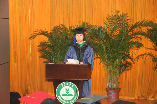果树学佟星代表在校研究生在典礼上发言