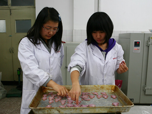 10月27日,在我校食品楼内,众多的“食品人”正在为即将开幕的第三届食品节奋力准备着。