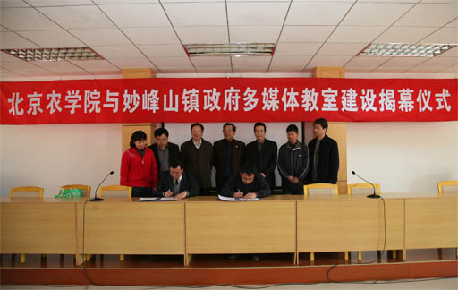 2009年3月31日上午,北京农学院与门头沟妙峰山镇政府举行了农民教育培训多媒体教室建设签约和挂牌揭幕仪式。副校长杜晓林、教务处处长范双喜、学生处副处长张国柱出席了仪式。门头沟区教委副主任王东升、妙峰山镇人民政府副镇长范兆来、镇文教办负责人以及北京康邦科技有限公司高教一部副经理郭文德出席签约仪式。教务处副处长沈文华主持仪式。