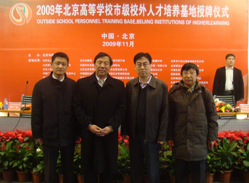 11月19日,北京高校市级校外优秀人才培养基地授牌仪式举行。中共北京市委副秘书长李福祥、教育部高等教育司副司长杨志坚、北京市委教育工委副书记王民忠、北京市教委副主任郭广生、郑萼、委员孙善学出席。郭广生同志主持仪式。杜晓林副校长受邀出席。