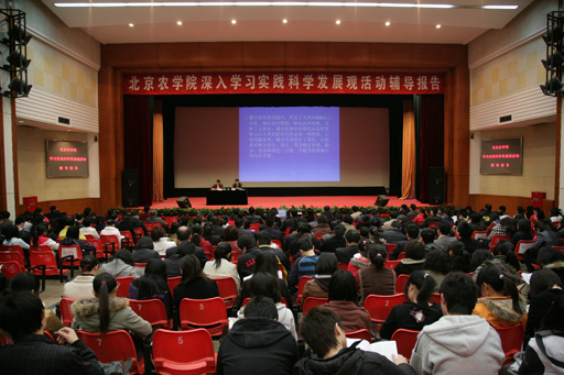 校长王有年表示,本次专题辅导报告会,对于学校总结“十一五”、落实第二次党代会精神、规划“十二五”基本思路具有很强的借鉴意义,作为北京市属唯一一所高等农林本科院校,要在提升农业专门技术人才的整体素质上下功夫,在提升农民科技素养和职业技能,培养农村实用型人才上下功夫,在提升农村基层管理干部的素质上下功夫,培养懂生产、有技术、会经营、善管理的应用型复合性人才。全体党员要深入理解认真把握内涵,深化对都市型现代农业的理解,进一步深入研究都市型的高等农业教育,进一步增强服务都市型现代农业发展的信心,提高服务和引领都市型现代农业发展的能力。