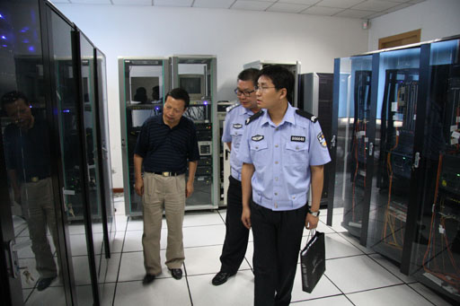 2008年7月23日上午,北京市公安局文化保卫处网监分中心负责人段继亮副处长一行来到我校教育技术中心,检查指导奥运期间我校网络与信息系统安全管理和运行情况。教育技术中心主任高明山、宣传部部长程春生接待了检查组一行。