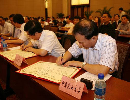 我校作为首批参与此次共建的高校,与中国农业大学签署了对口共建协议。校长王有年参加签字仪式。