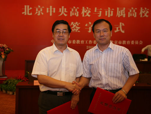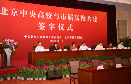 为了进一步加强北京中央高校与市属高校共建合作,实现北京高等教育优质资源共享,推动首都高等教育事业进一步发展,9月15日上午,在北京会议中心召开了北京中央高校与市属高校共建签字仪式。