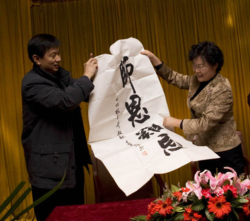 会上,7921班校友靳建疆向学校捐赠了书法作品。“师恩难忘”,表达了他对母校老师的深深感恩之情。