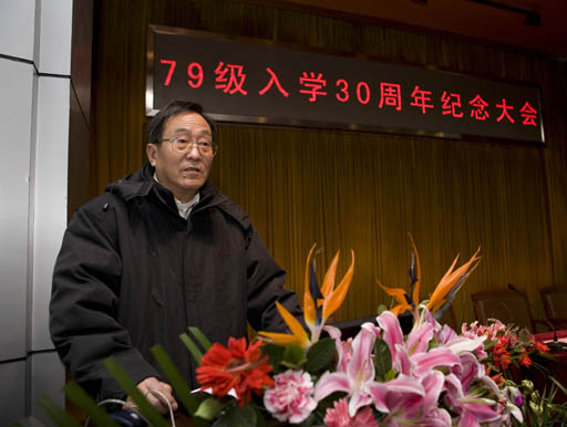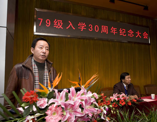 原7931班班主任王平代表老教师在会上发言。他谈到,30年前他们和学生一起奋斗的岁月依然历历在目,那种在艰苦的环境中,老师不气馁,学生不抱怨,利用分分秒秒学习的精神让他感动。他坚信,北京农学院的明天会更加美好!
