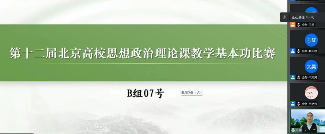 近日,根据北京市教育工作委员会“关于举办第十二届北京高校思想政治理论课教学基本功比赛的通知”要求和安排,北京航空航天大学马克思主义学院、全国高校思想政治理论课名师工作室(北京航空航天大学)组织举办了习近平新时代中国特色社会主义思想概论课预赛。经专家评委教案评分、教学展示打分和学生评委教学展示打分,最终评选出一等奖3名、二等奖7名、三等奖10名、优秀奖14名。我校马克思主义学院教师熊学艺参加比赛并荣获二等奖,将和其他一等奖、二等奖获得者共同被推荐参加第十二届北京高校思政课教学基本功比赛决赛。