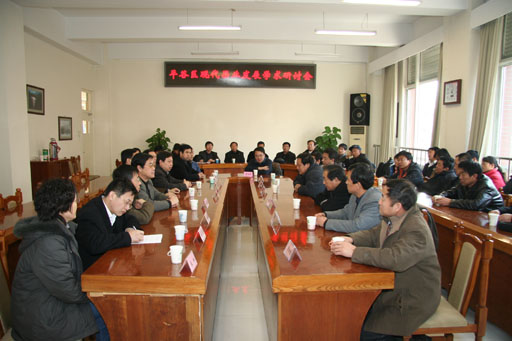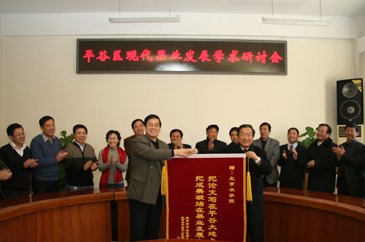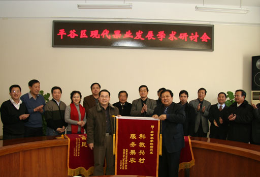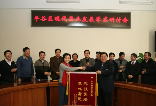 2008年1月6日上午,平谷区现代果业研讨会在我校教B209举行。院长王有年、副院长郑一淳及平谷区原副区长、大桃协会会长傅朝永,人大常委会副主任、果办主任邢彦峰出席会议,党政办、科技与研究生处、植科系、经贸系、生物技术系负责人和平谷区果办领导和技术人员近50人参加了此次研讨会。