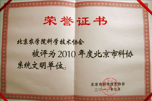 我校科协被授予2010年度北京市科协系统文明单位