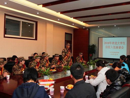 座谈会上,各位领导、老师和退伍大学生勉励大学生新兵,希望他们在部队好好锻炼,全面发展,做一名合格的军人,为学校和个人赢得荣誉。