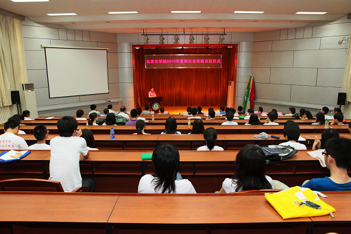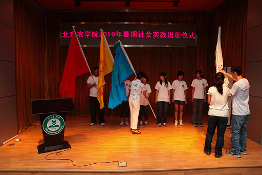 据统计,2010年暑期我校将有137支社会实践团共计2000多人奔赴首都各地开展社会调查、志愿服务、就业见习等实践活动。其中,生物技术学院赴昌平区“了解社区助理管理运行机制实践团”、经管学院赴门头沟区“京郊农村对大学生村官需求状况调查团”、人学学院赴西城区“信息化互助行动实践团”、大学生都市农业发展研究会赴怀柔区“京郊土地房屋出租后土地私人化、房屋会所化调研实践团”4个团队被团市委确定为2010年暑期社会实践京内重点团队,生物技术学院赴山西吕梁科技服务实践团、校记者团组建的“走进绿色军营,寻访军中榜样”实践团2个团队被团市委确定为2010年暑期社会实践京外重点团队。出征仪式后,我校暑期社会实践活动将全面展开。此外,我校2009级1400多名本科生还将深入京郊完成形势与政策课程暑期实践任务。