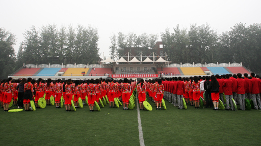 9月30日下午三点,北京农学院操场上,彩旗飘扬,人潮澎湃。操场的周围挂着一幅幅振奋人心的横幅:“热烈庆祝新中国成立六十周年”、“祖国利益高于一切”。