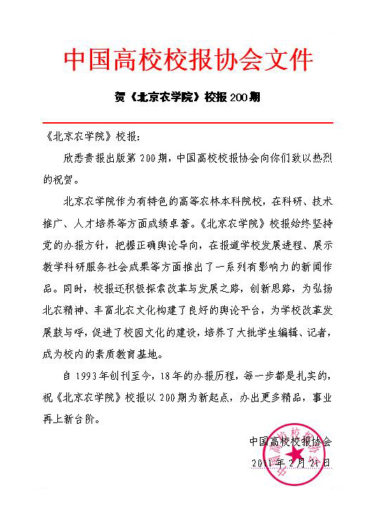中国高校校报研究会和北京高校校报研究会也分别发来贺信对校报创刊200期表示祝贺。