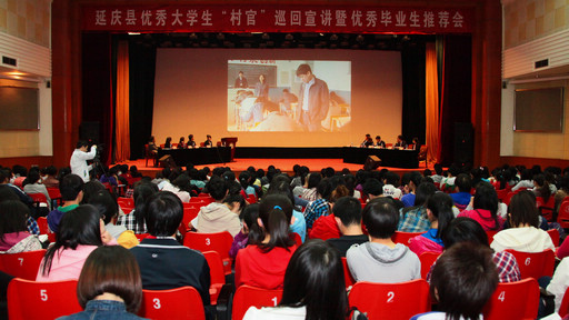 培训期间,学员们还聆听了延庆县优秀大学生 “村官”宣讲报告,六名大学生“村官”结合在农村工作的经历,用朴实的话语,讲述了他们生动感人的事迹。优秀“村官”用自己的经历告诉大家,农村是一片广阔的天地,大学生可以在农村大有作为,他们的事迹感人肺腑,催人泪下,激发了同学们到基层、到农村建功立业的热情,礼堂里不时响起热烈的掌声。