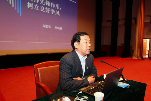 副校长杜晓林作了《发挥先锋作用,树立优良学风》的精彩报告。杜校长从分析优良学风与学校发展、个人成长的关系入手,举了大量我校优秀校友、优秀班集体的事例,指出优秀学生,特别是党员和党积极分子同学要在学风建设中发挥示范作用,做建设良好学风的模范。