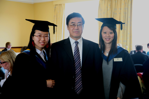 在哈珀优秀毕业生颁奖仪式上与优秀毕业生张艾琼(左1)和姜冬妮(右1)合影