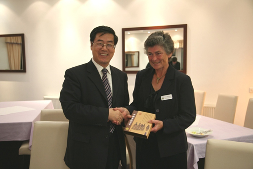9月18日10点,校长王有年及代表团会见了哈珀亚当斯大学学院董事会主席Alison Blackburn夫妇,外事事务主任Brain Revell先生,并与新任校长David Llewellyn先生进行了亲切会谈。校长王有年在会谈中表示,希望在与哈珀亚当斯大学学院的合作项目的开展过程中,能够进一步加强学校间更高层次、更广范围的合作与交流,如在研究生教育教学领域的合作;学生、教师的互访及培训;重视并促进合作项目的学生英国本土就业、创业。David Llewellyn 校长对王有年校长提出的建议表示赞同,并将就学生英国就业问题,加强和加快与英国教育部门的联系和沟通,落实留学生当地就业的政策和体制,从政策上、机会上给予合作办学的国际留学生更多支持。王有年校长及代表团还参加了优秀毕业生颁奖仪式。我校国际学院两位学生分获食品质量及零售业管理、国际商务管理专业最佳学生称号。