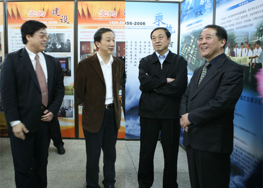 副市长牛有成、赵凤桐在党委书记孙尧东,院长王有年陪同下参观校史展