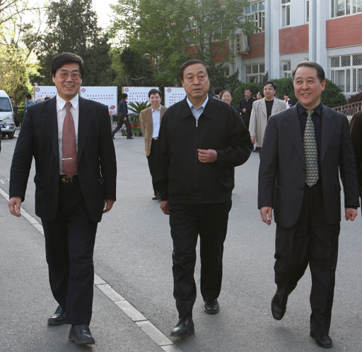北京市教委副主任郭广生,党委书记孙尧东,院长王有年合影