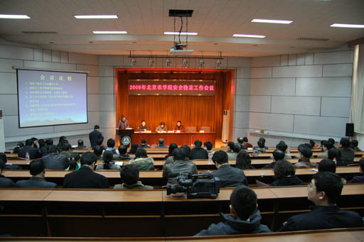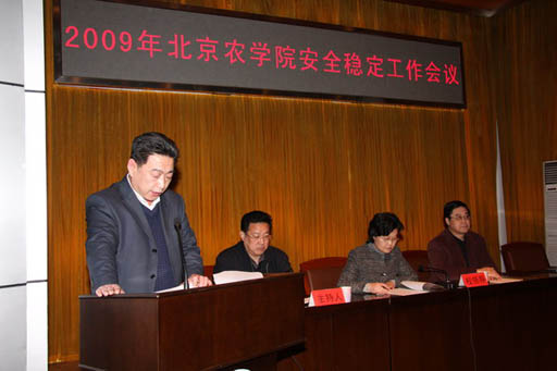 2009年3月30日,北京农学院2009年安全稳定工作会议隆重召开。校党委书记王慧敏,校长王有年,校党委副书记高喜军,副校长杜晓林、姚允聪和校党委原副书记罗维忠出席会议。全体中层干部和各单位相关人员、学生会和研究生会主席参加会议。会议由校纪委书记朱生利主持。