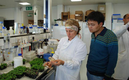 按照国家自然科学基金委、英国皇家学会中英科技合作项目(项目编号:30911130166)执行计划,2010年4月16月至20日,英国Exeter大学生命科学学院教授Murry来我校进行项目合作研究和交流访问。英国学者的来访受到我校领导的重视,副校长杜晓林与Murry进行了座谈,双方进行了愉快的交流。访问期间,Murry还参观了我校北京市重点实验室,组培实验中心,访问了中国科学院遗传所、中国农业大学生命科学学院,并进行了学术交流和研讨。