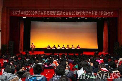 为扩大科技创新活动在学生群体中的影响,加强在创新活动中取得突出成绩的优秀学生的榜样宣传作用,进一步促进我校大学生科技创新活动更好更快的发展,3月31日下午1:00,在学校礼堂举行了北京农学院2009年学生科技竞赛表彰大会暨2010年大学生科技节启动大会。大会由团委书记杨宝东主持。