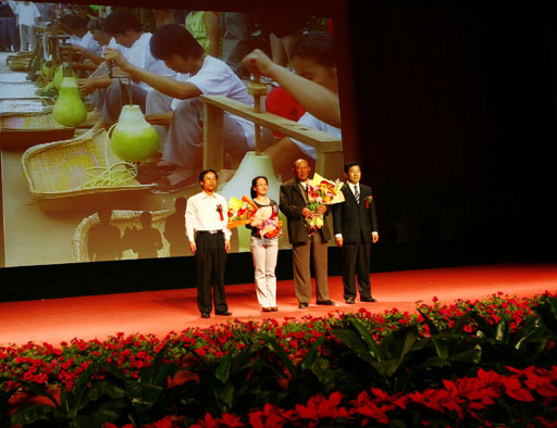 延庆县组织部副部长张河、永宁镇党委副书记郭铁石为永宁镇村官胡一萍颁奖