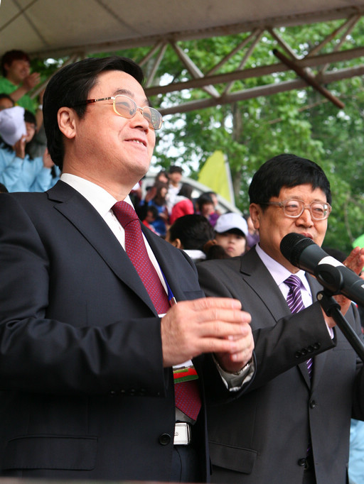 校党委书记王慧敏、校长王有年为本届运动会的召开点燃火炬。