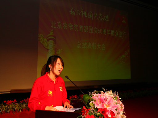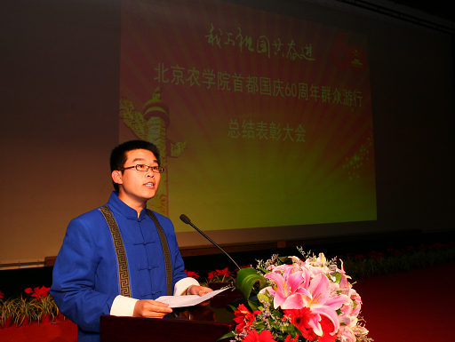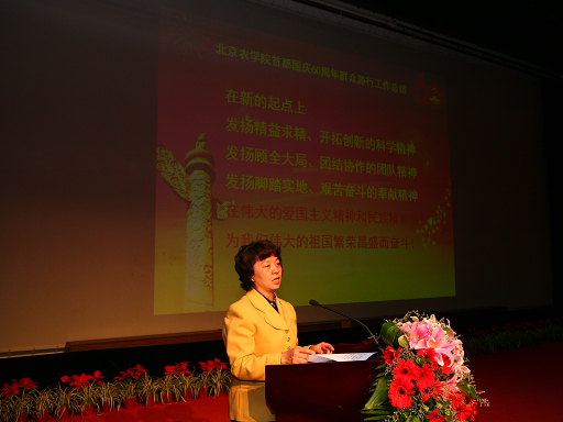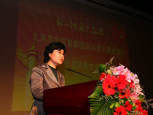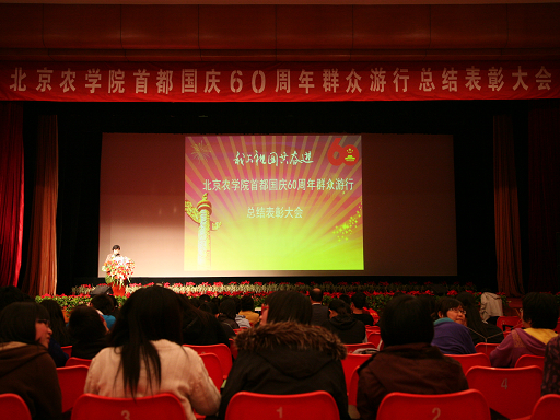 10月21日,金秋的北农,处处洋溢着收获的气息。为了表彰国庆游行优秀的先进集体及个人,我校在礼堂隆重召开首都国庆60周年群众游行总结表彰大会。