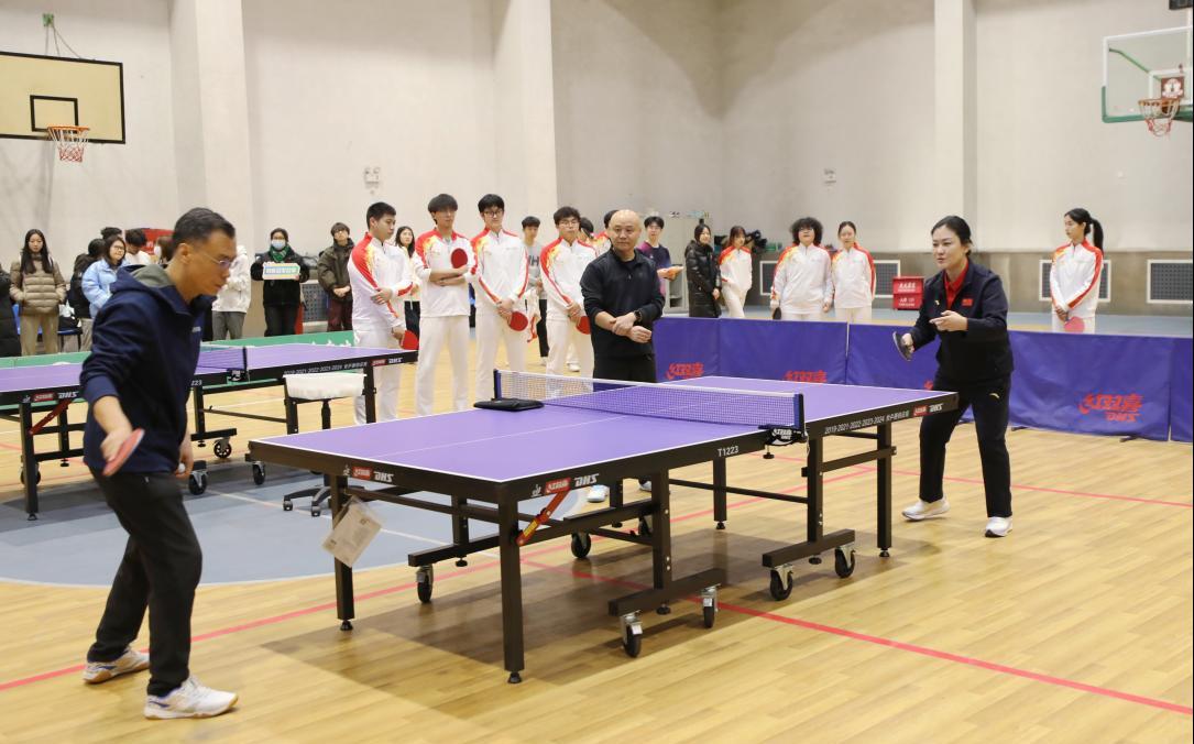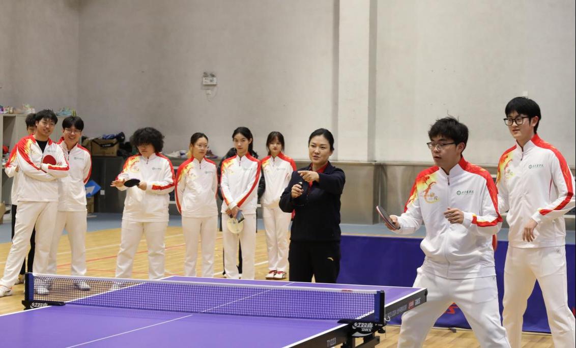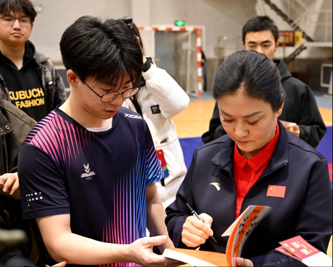报告会前,刘伟在篮球馆与我校教职工乒协、校乒乓球队及2025年乒乓球新生赛获奖学生代表进行面对面交流。她结合自身多年训练与比赛经验,细致讲解技术要领,并进行个性化指导。