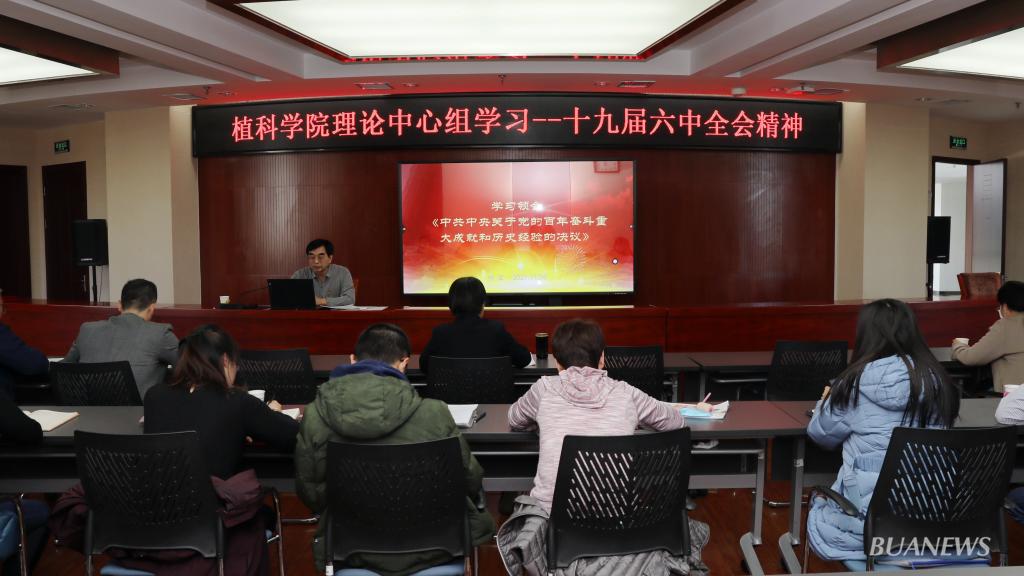 11月26日下午,植物科学技术学院党总支召开理论中心组扩大学习会,校党委书记杨军到会指导并作党的十九届六中全会精神专题辅导报告,解读党的十九届六中全会精神,学院处级干部、党支部书记、系(室)主任、支部委员参加学习会,会议由学院党总支书记王绍辉主持。