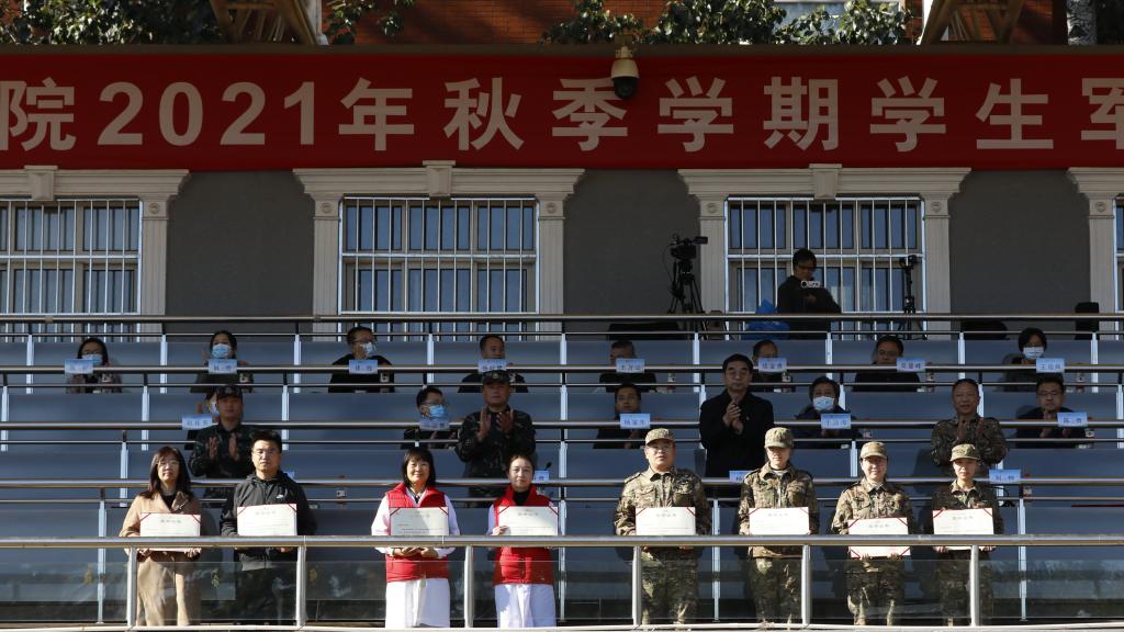 10月22日上午,我校秋季学期学生军训闭营式在操场举行。党委书记杨军,军训团副总指挥、北京八达岭军训基地主任于洪勇,军训团团长、北京八达岭军训基地教官张占虎,各相关职能部门领导和各学院负责人出席闭营仪式。学生处处长、武装部部长刘柳主持会议。
