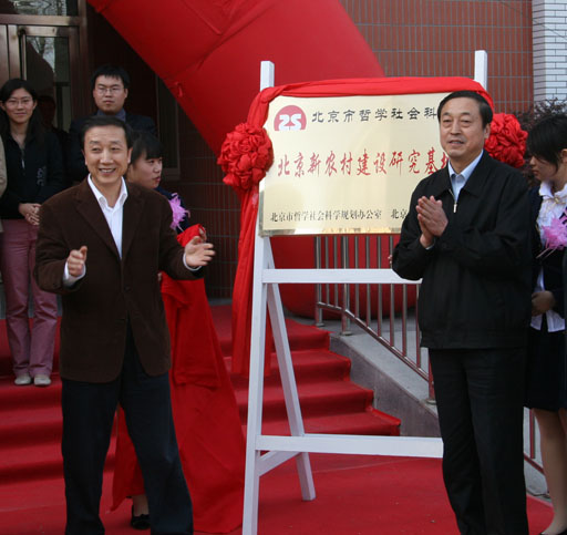 北京市哲学社会科学规划办主任陈之昌宣读建立新农村建设研究基地的决定并介绍了北京市哲学社会科学研究基地的情况。他指出,希望在大家的支持下,北京市新农村建设研究基地充分发挥整体优势,多出成果,出好成果,为党和政府的决策服务,为首都经济社会发展服务,为北京市建设创新性城市服务。