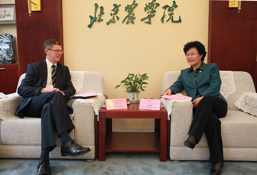 双方会晤重点商谈了今年秋季的中英项目教学评价事宜。Prof. David George Llewellyn表示,将尽全力配合我校开展教学评价的准备工作。王慧敏表示,我校会在各方面做好充分准备,确保教学评价工作的顺利通过。双方还就我校国际学院赴英学生签证程序变化、中英研究生“1+1”项目开展、哈珀·亚当斯大学学院在中国的发展以及我校赴英培训团的安排等问题进行了磋商。
