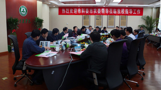 科技处处长秦岭就都市型现代农业研究、农产品安全技术、生物种业三个方面汇报了学校科研情况及今后发展设想。