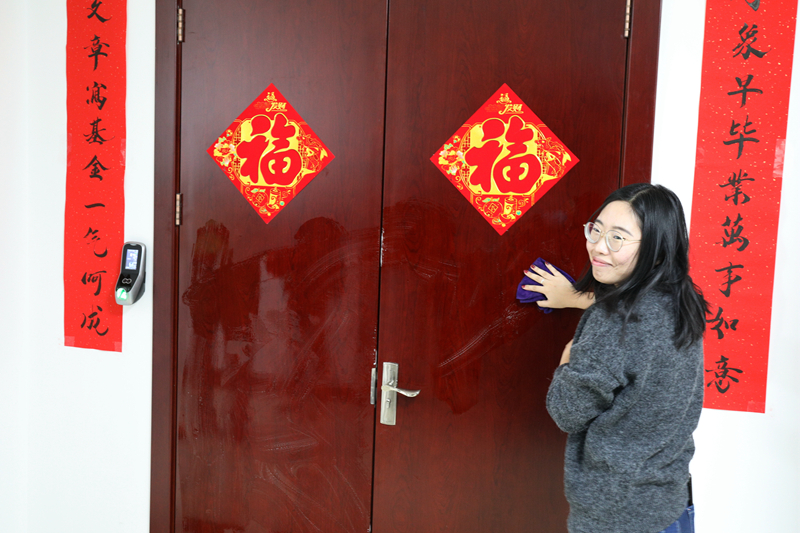 在学校、学院的关心下,在老师的指导下,留校学生将自己的学习、生活安排地井井有条,实验室里,同学们专心致志地做着实验,学习之余,同学们一起打扫卫生、贴春联,迎接新年。
