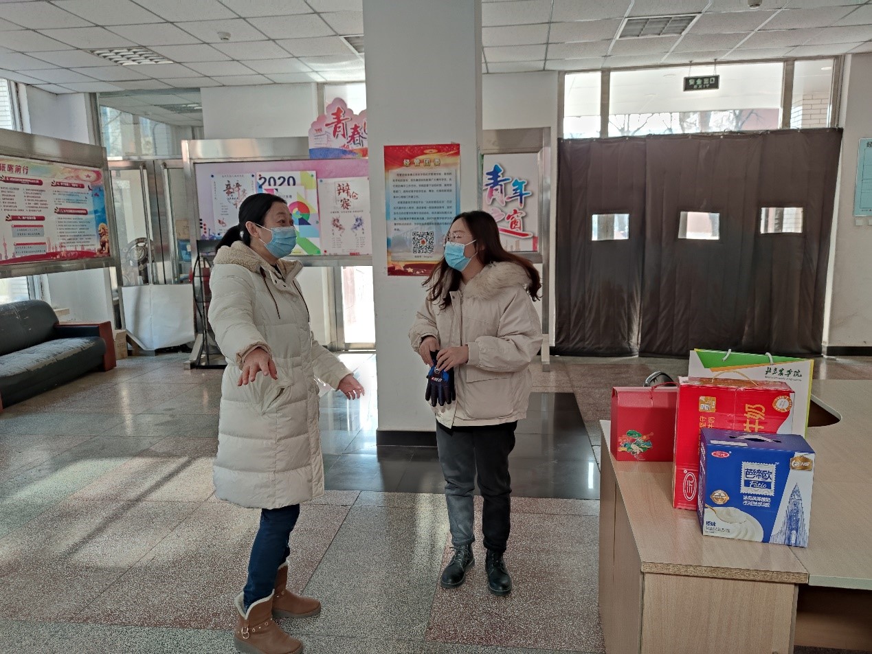 经管学院副院长张晓凤、辅导员邬津慰问留校学生并发放慰问品。