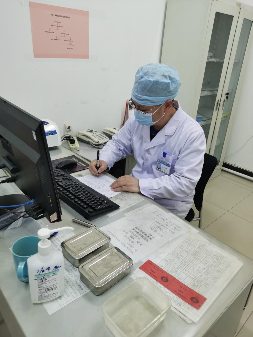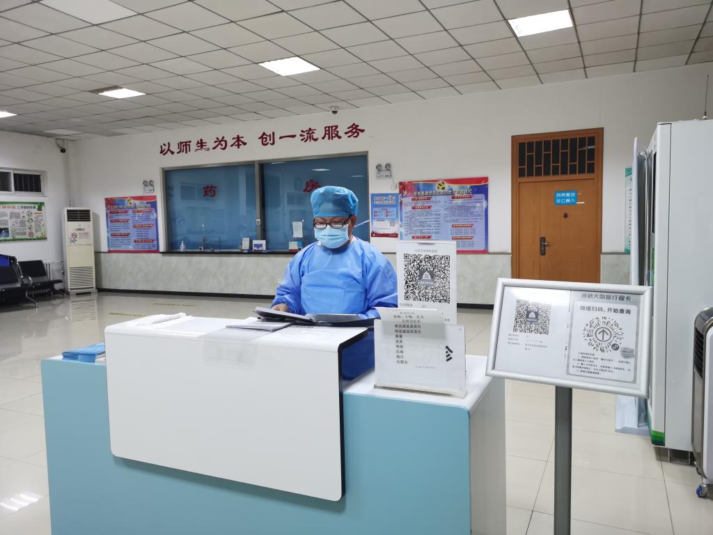 校医院为了教工和留守学生医疗保障无假期,24小时值守。为了满足慢病患者延续用药,每周二和周五都开大药房,最大限度缓解离退休老同志外出就诊不便的困境。门诊工作中,按照疫情的院感防控要求,严格执行风险区域日更新,就诊患者进行测温,刷行程码、到访码,并落实登记制度。就诊大厅实行一米线间隔,诊室内做到一人一室,有序出入,避免密集,科学防控。