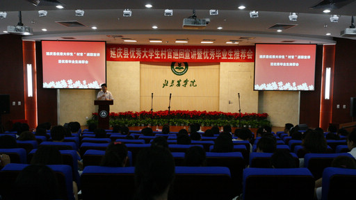 韩宝平介绍了近年来我校的大学生“村官”工作情况,向同学们说明了大学生“村官”的重要意义,并对延庆县政府、人保局、村官办对我校大学生就业工作的重视和支持表示感谢。全体与会人员观看了专题片《青春在田野上闪光》,宣传片从政策与保障、管理与培养、成就与评价三方面全面展示了延庆县大学生“村官”工作。