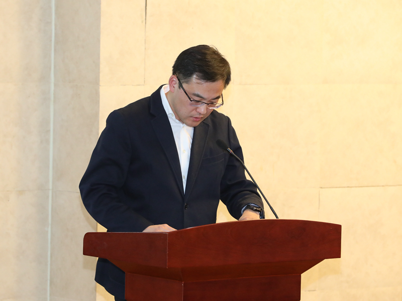 教代会青年委员会主任陈勇宣读大会决议(草案)。