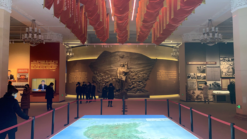 在军事博物馆展厅,我校师生认真聆听解说员的讲解,驻足观看每一份影像资料和实物,仔细阅读每一份文件资料,一场场艰苦卓绝的战斗,一组组对比鲜明的数字,深深触动着师生们的心。
