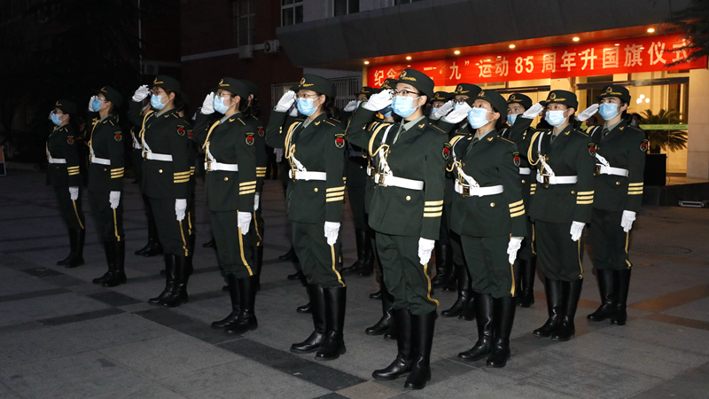 12月9日早晨7点,北京农学院纪念“一二·九”运动85周年升国旗仪式暨女子国旗班换届仪式在行政楼前隆重举行。