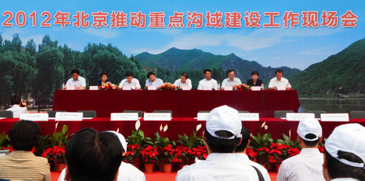 6月19日,2012年推动重点沟域建设工作现场会在怀柔天河公园举行,北京市委常委、统战部部长牛有成,市委副秘书长赵玉金,市发改委主任张工,市委农工委书记、市农委主任王孝东,市财政局副局长李玉国,市发改委副主任蒋力歌,市农委副主任王建中,怀柔区委书记张建东,怀柔区长齐静等领导出席会议。市、区有关部门领导,全市七个山区区县领导及市级重点沟域乡镇领导共200余人参加会议,我校校长王慧敏应邀参加会议并作为唯一高校代表与区县代表签订合作协议。