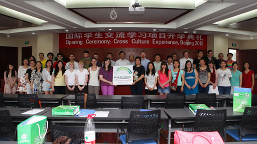 开学典礼后,我校学生与外国师生互结对子。在今后三周的交流学习中,他们将在一个教室里共同学习、共同交流、互相帮助。他们将一同学习基础汉语会话、中国概览、中国中国烹饪与茶艺、中国文化与健身、美国概览(美国教师授课)等课程,并将一起游览参观中国传统文化景点。