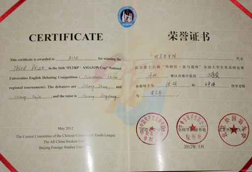 辩论赛云集了包括清华大学、北京大学、外交学院、北京外国语大学等在内的近百所高校,是目前国内规模最大、最权威的大学英语辩论赛。比赛历时四天,我校两位辩手分别与外交学院、南开大学、哈尔滨工业大学等学校的英语专业学生同场辩论,体现了我校学生较高的英语水平和良好的精神风貌。
