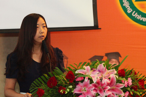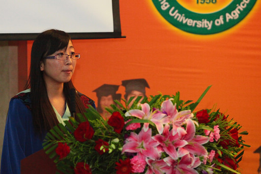 校友代表国家质检总局综合处黄秀生处长在会上发言,对毕业研究生提出真诚祝福,并分享四点人生经验和感悟:一是要志存高远,脚踏实地;二是要甘于奉献,勤奋敬业;三是要持之以恒,不断学习;四是要情系母校,学会感恩。